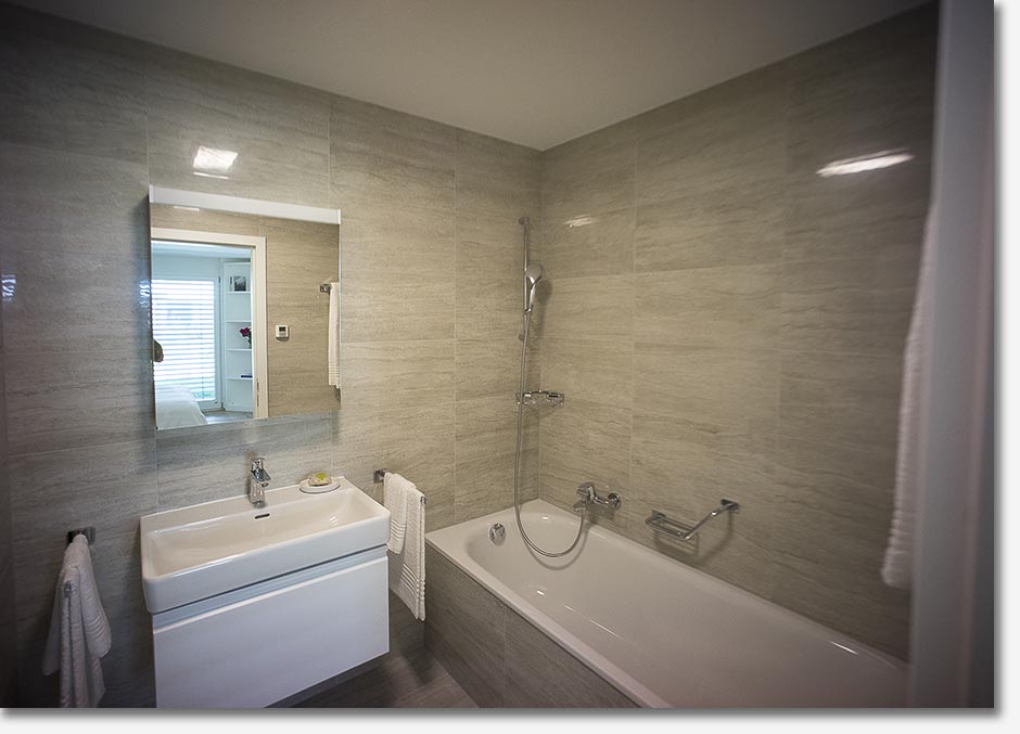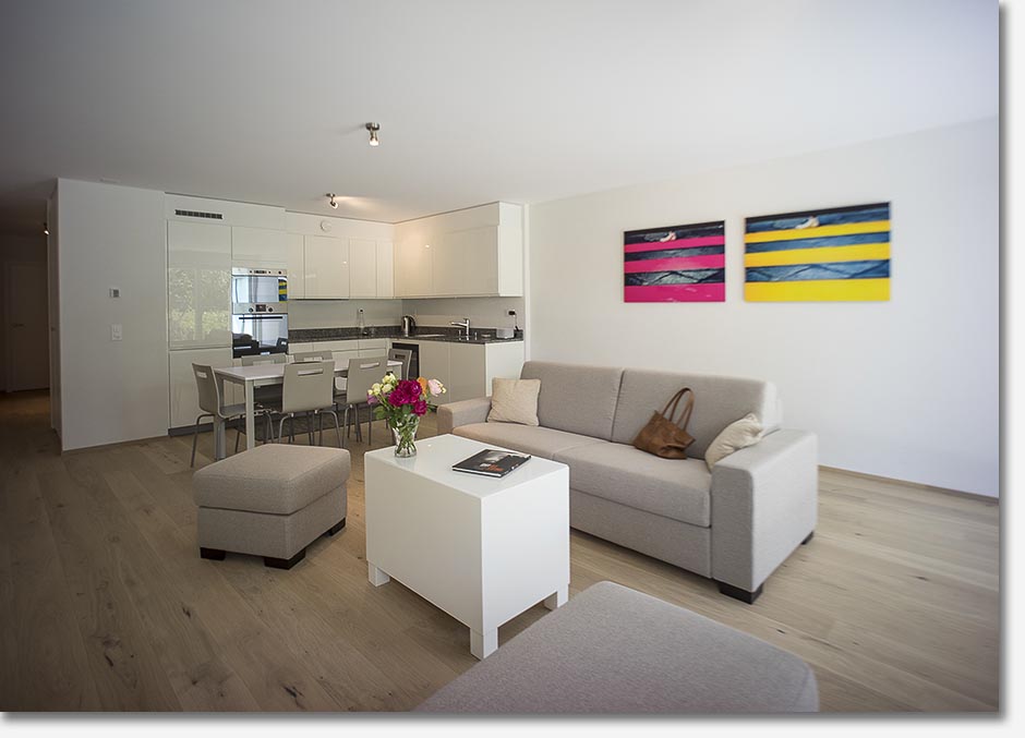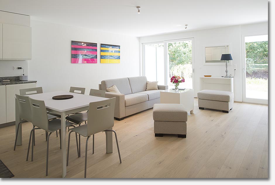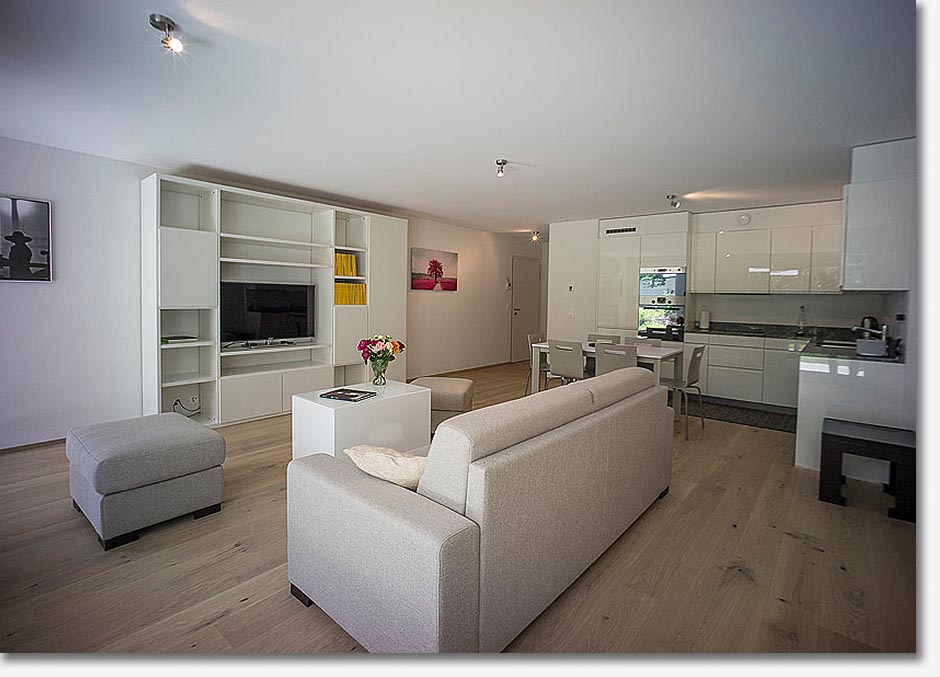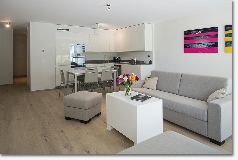 Boasting a spacious terrace with lake view, this light filled apartment is tastefully decorated with