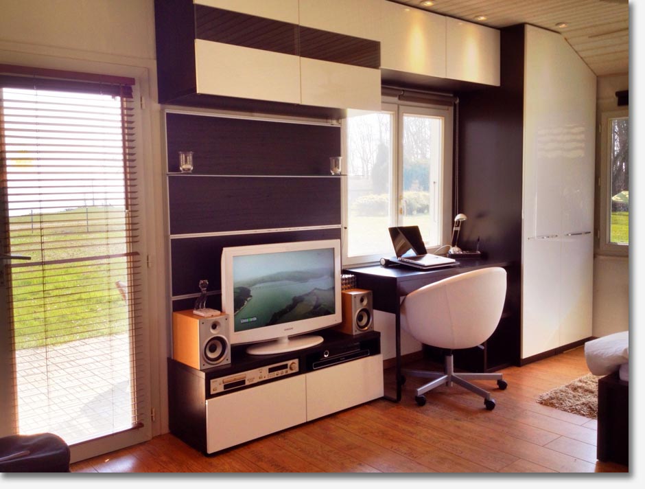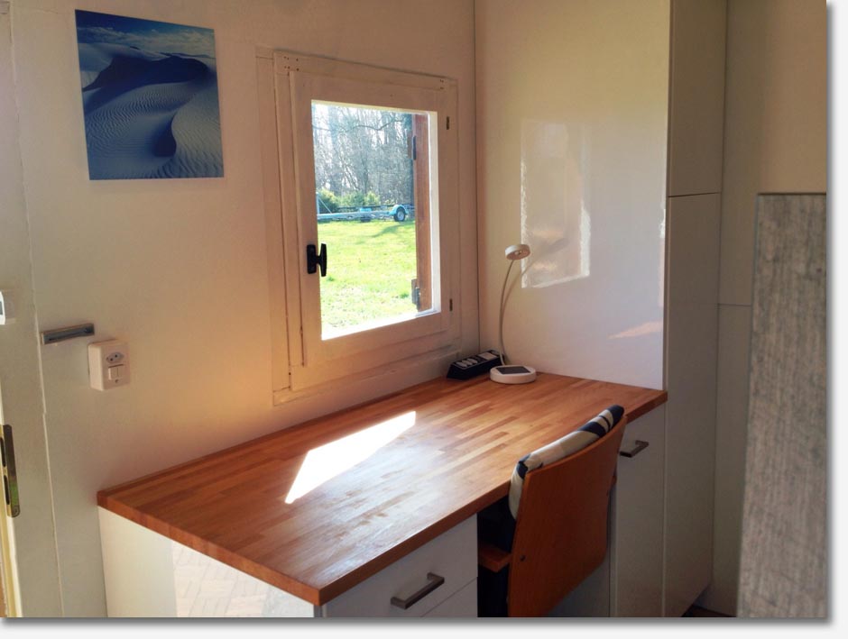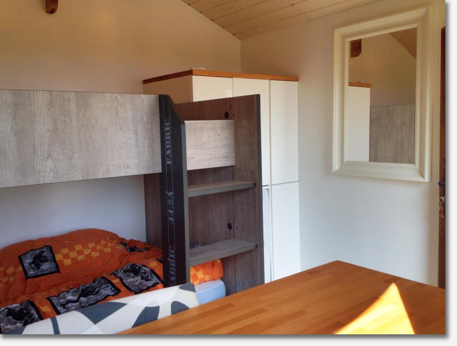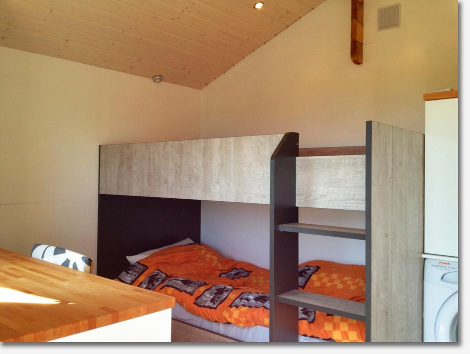 washer/dryer machine, storage, desk and bunk bed sleeps two. Alone, the chalet comfortably
