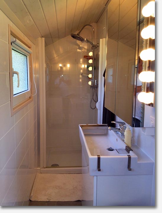 An ideally located small chalet and cabin on the lake, in Dully with a en-suite shower room with