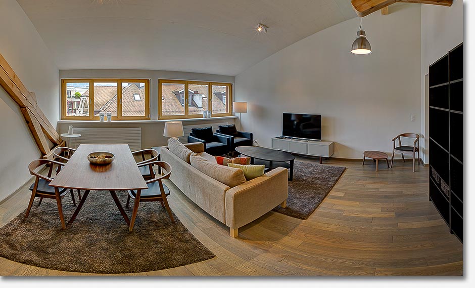 and well equipped flat seduces with its cozy furniture, view over the rooftops to the lake and